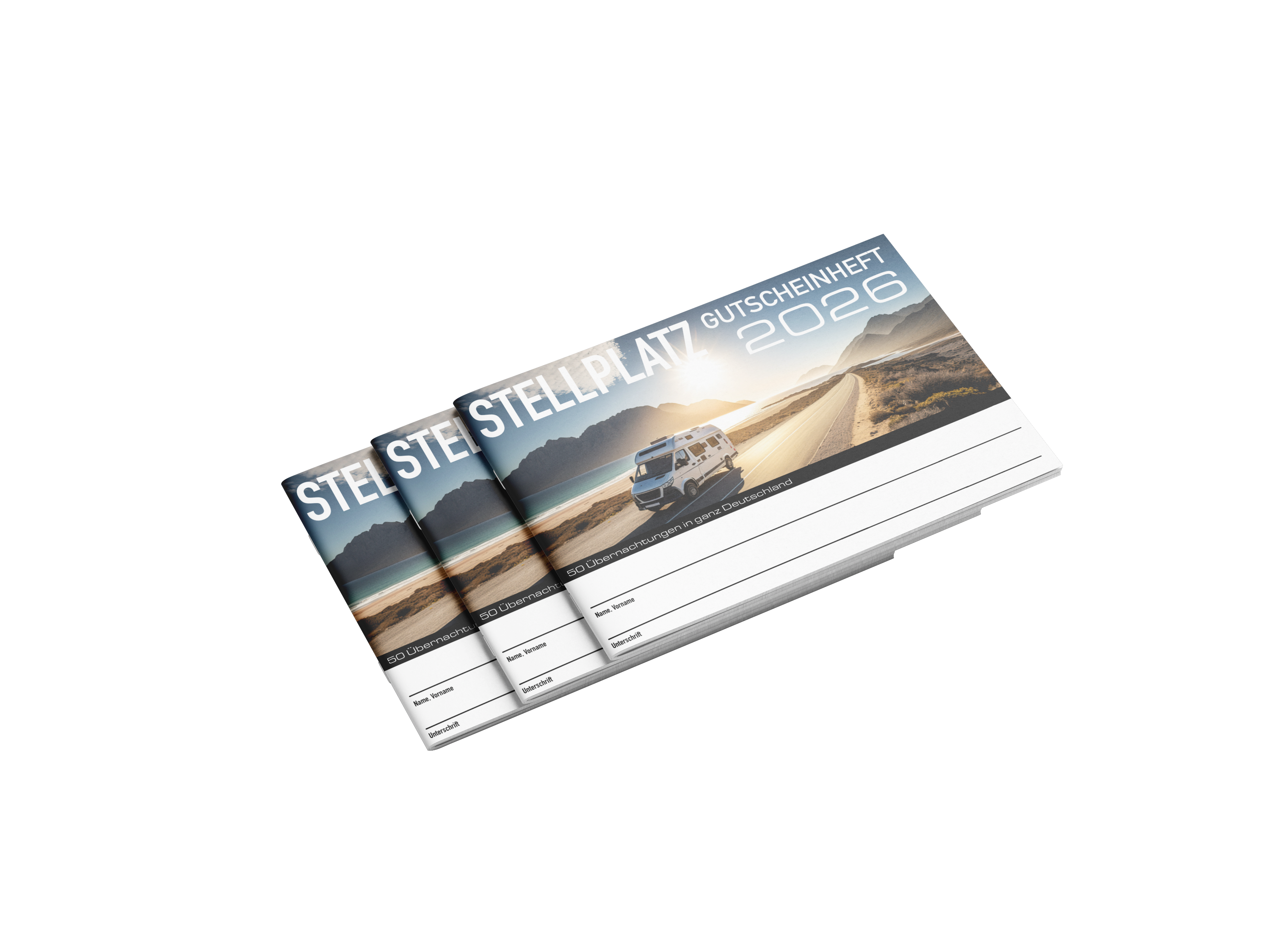 Die erste Ausgabe des Stellplatz-Gutscheinhefts nicht verpassen! Sichere dir exklusiven Rabatt vor Veröffentlichung der Ausgabe.